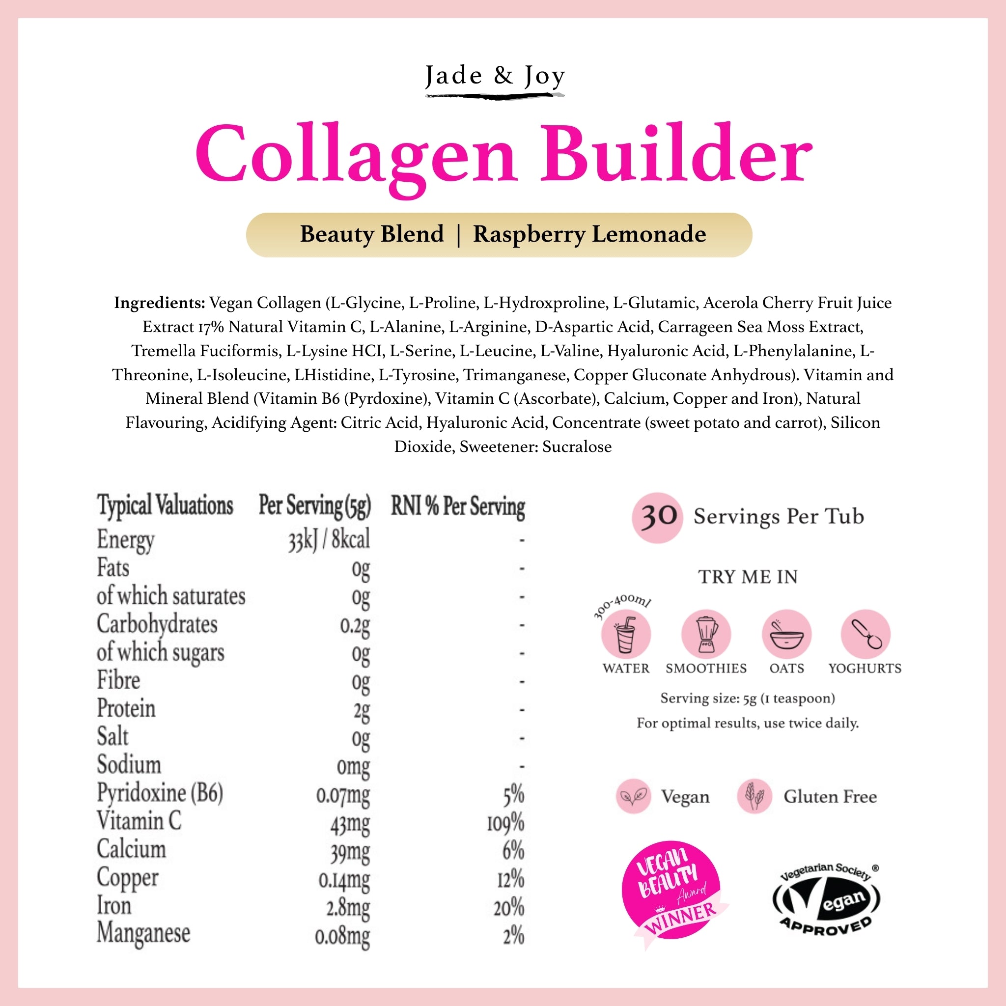 We’re breaking the stigma that claims Vegan Collagen tastes bad with our irresistible Raspberry Lemonade flavour.